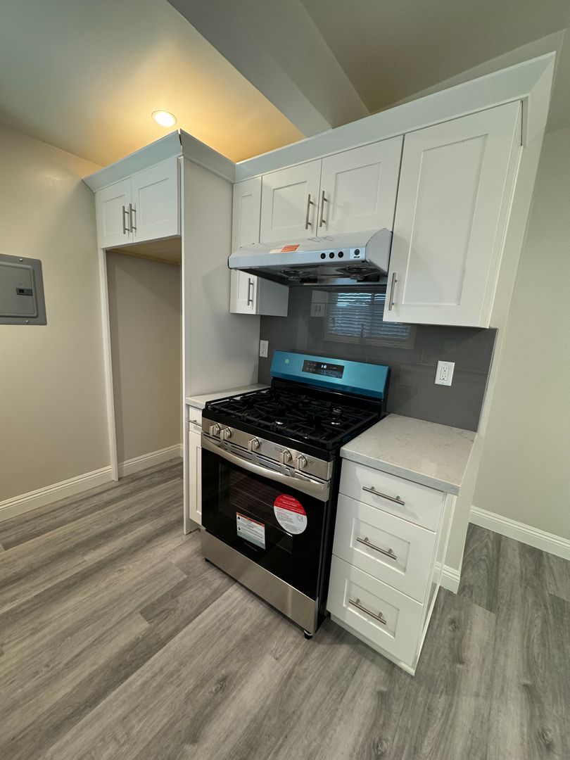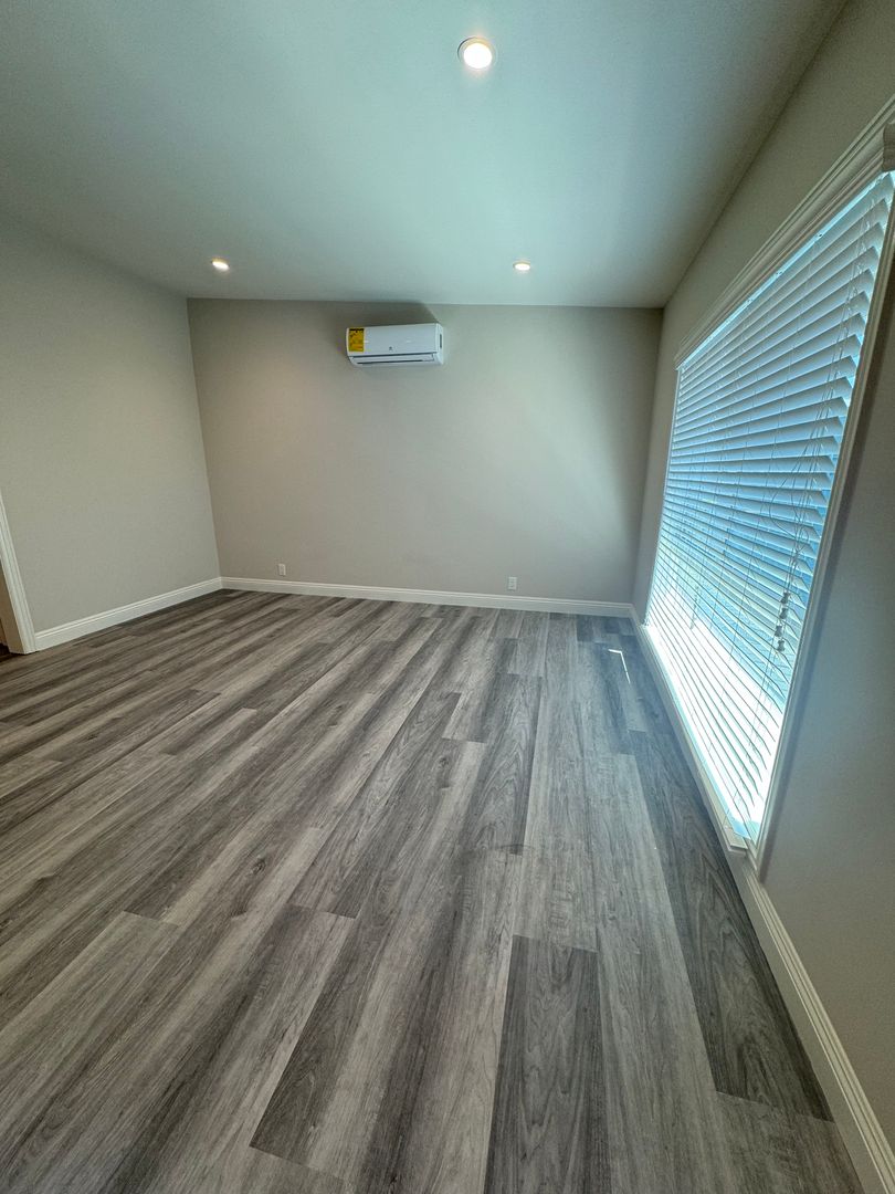 This is a beautiful and very spacious newly remodeled 1 bedroom+ 1 bath unit located on the second floor. Mini splits are located in the bedroom and living room to help cool down and warm up the unit. The unit includes one covered parking space. Street parking is available. We have shared laundry on site.
